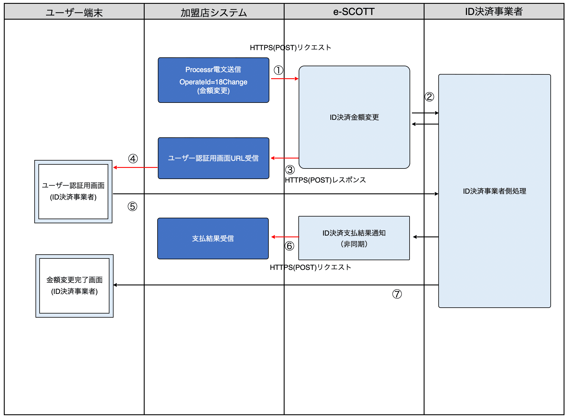 | ⑦ | ID 決済事業者は金額変更完了画面をエンドユーザに表示します。 |